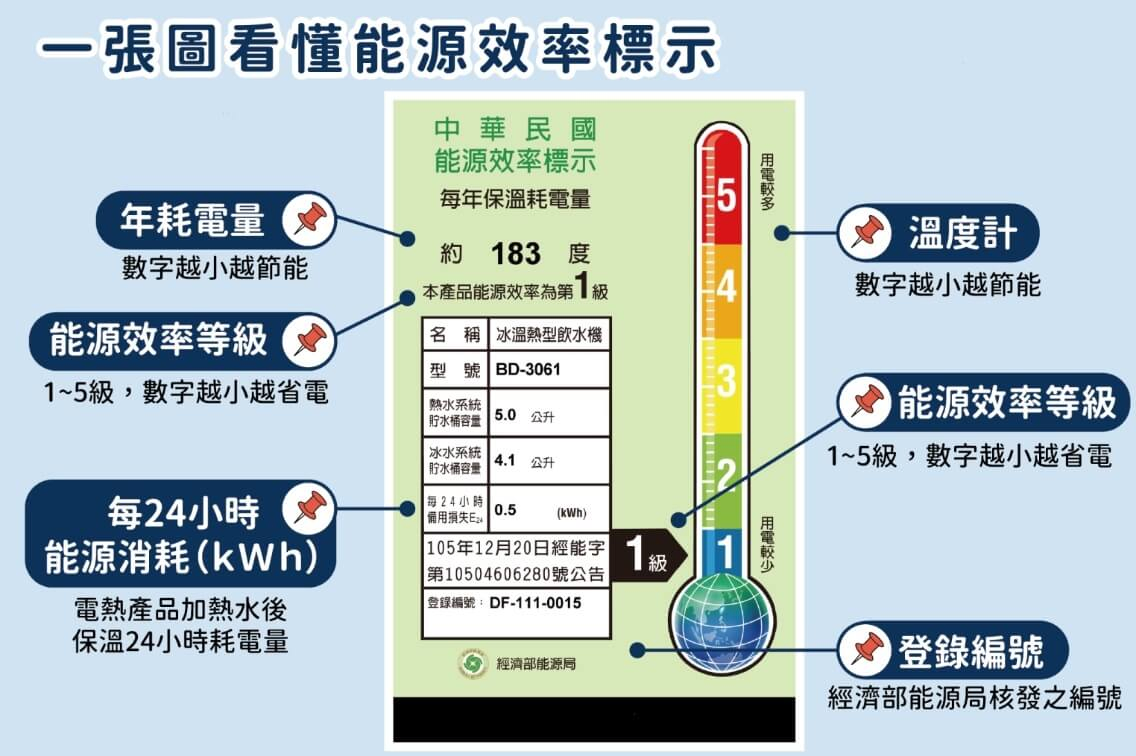 一.節源効率分級標示為ㄧ級之新品節源効率分級標示